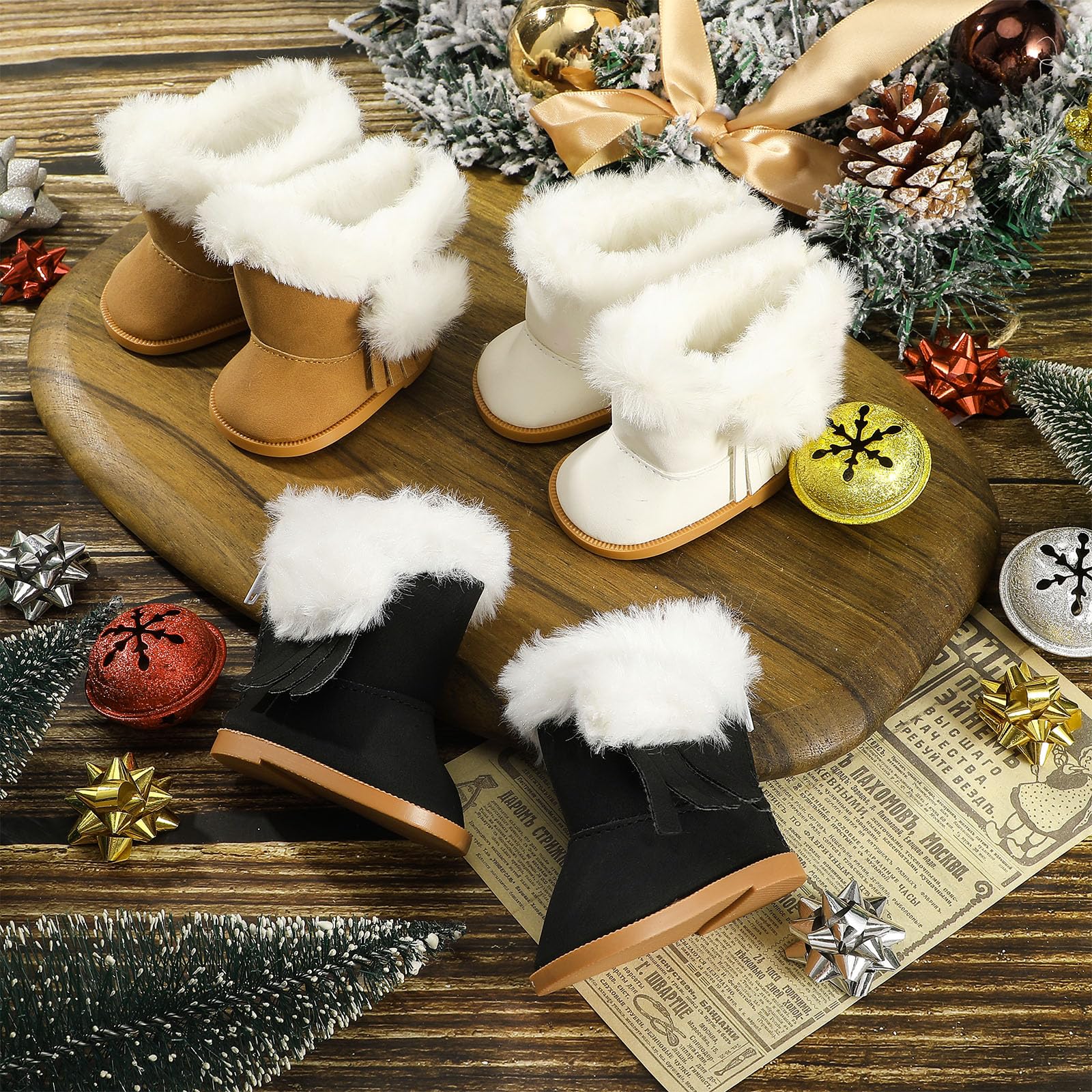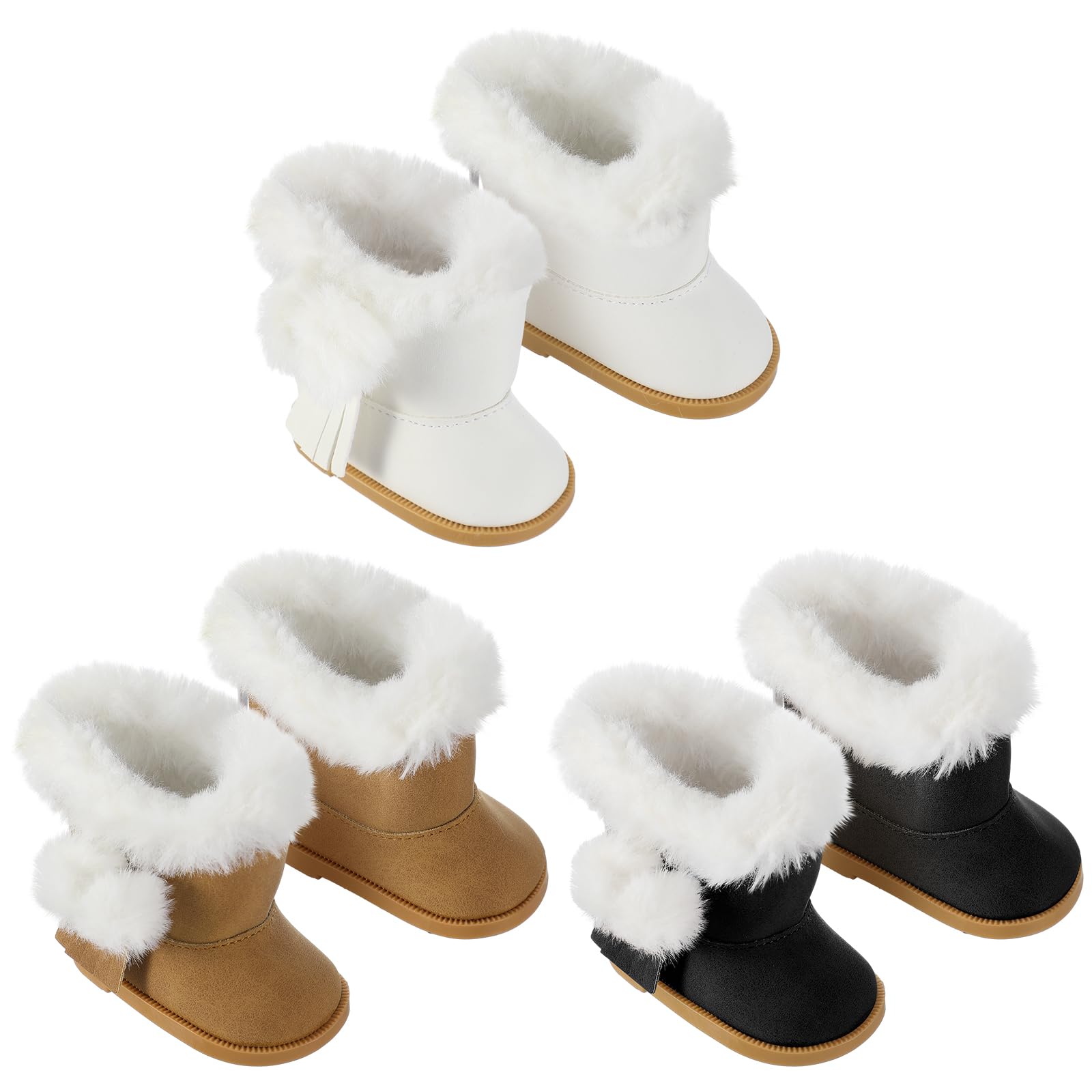 3 Pairs Christmas18 Inch Doll Shoes Boots Dolls Winter Snow Doll Boots Accessories(Black White Brown)